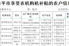 桂平市2022年享受农机购置补贴第一批次结算的农户信息公示 桂平市相关乡(镇) 根据广西壮族自治区农业农村厅、自治区财政厅《关于印发广西2021-2023年农机购置补贴实施方案的通知》(桂农厅发〔2021〕82号)、《桂平市农业农村局、桂平市...